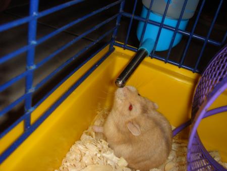 Je vous présente "le plus beau cadeau du monde". Maman et Papa m'ont offert un hamster russe. Je vous raconte un peu le pourquoi de ce cadeau. En fait, nous faisions régulièrement des voyages à la jardinerie pour renouveler le stock de plantes de Maman qui, il faut le dire, n'a pas vraiment la main verte . Je regardais les petites hamsters avec envie, pendant que Lala regardaient les poissons. Maman nous a alors proposé de ramener un petit animal au choix : poisson ou hamster, à nous de choisir. Vous connaissez Lala, impossible de la faire plier : elle est restée sur le choix du poisson .....